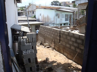 You'll notice the large avocado tree- we're trying to save it. The wall directly behind the tree is our upper driveway. That wall will eventually come down, but we think we will be able to work around the tree.